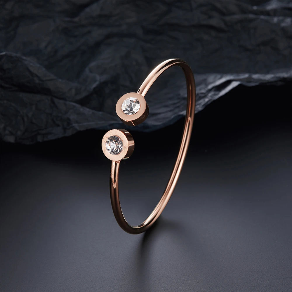 Crafted from premium non-tarnish metals, our Savona Eclipse Bracelet is defined by its polished finish and twin bezel-set stones that catch the light with every movement. Its open-ended design makes it effortless to slip on while ensuring a secure, comfortable fit for daily wear.
